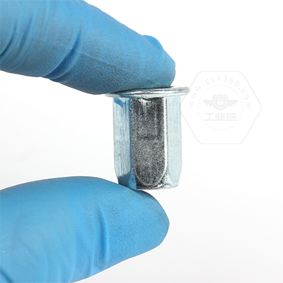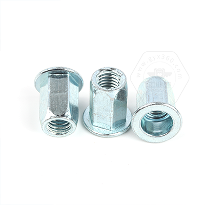 工業(yè)熊碳鋼藍(lán)白鋅平頭六角鉚螺母GB17880.5