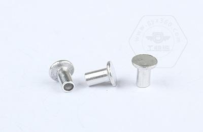 安裝時尾部空心部分受擠壓向外翻邊,形成卡扣,固定連接件。 扁圓頭半空心鉚釘主要用于金屬薄板或皮革、帆布、木料等非金屬材料的鉚接場合。